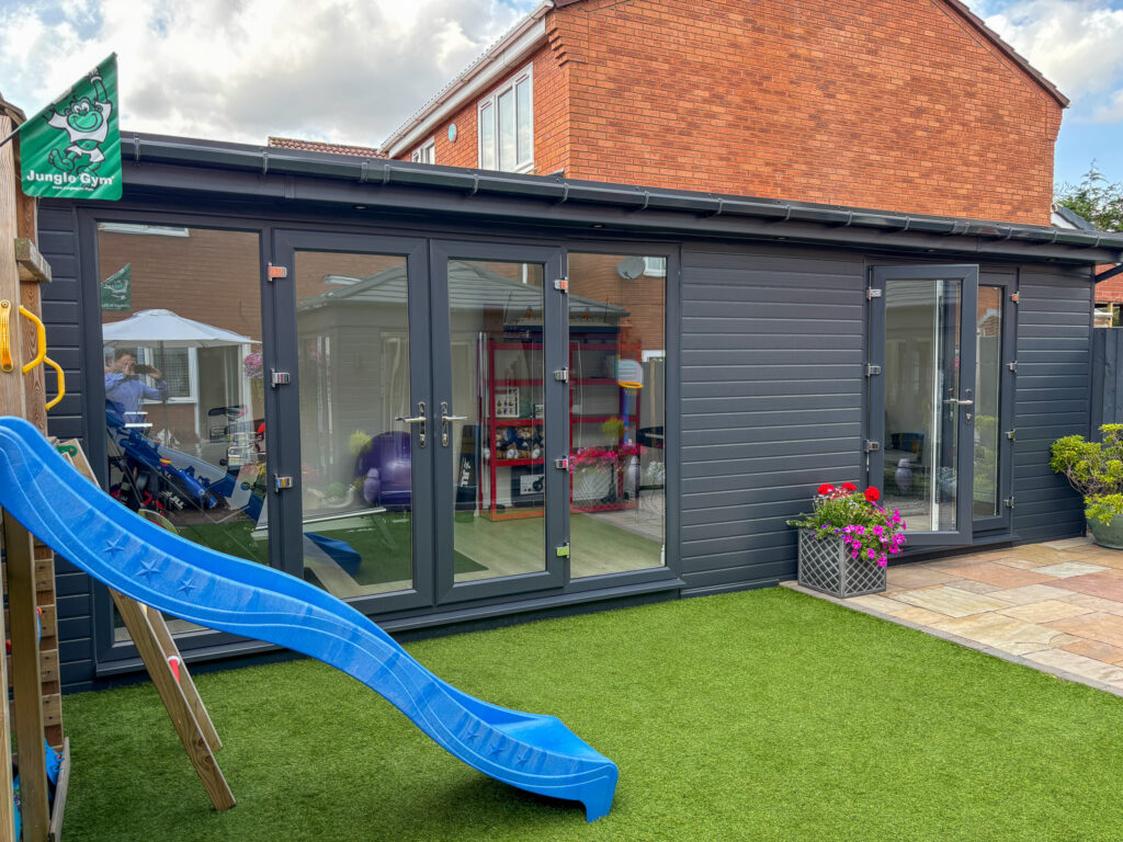 An idyllic conservatory roof conversion completed for a customer in Barnt Green, Worcestershire. The conservatory roof installation was completed using a Chestnut Tapco roof slate. The interior conservatory roof was finished with a plastered ceiling fitted with 10 LED lights and 2 roof Lights giving the perfect amount of light and warmth throughout the year.